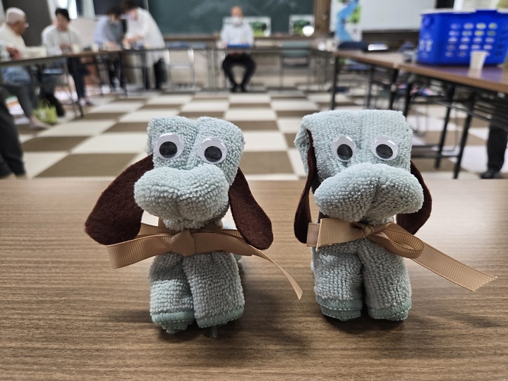 同じ材料で作ったワンちゃん「ムギ」と「ポコ」