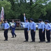 この後、小型動力ポンプ操法訓練ですが、 今年度は残念ながら、雨でグランドの状態が悪く中止。