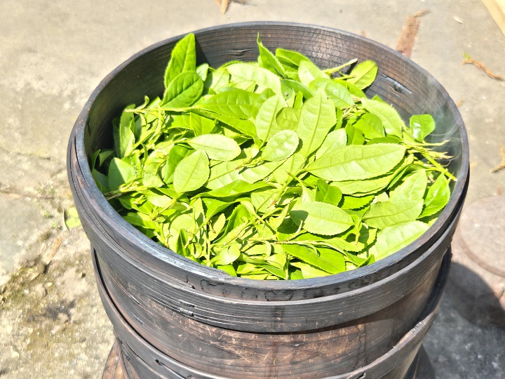 茶葉を蒸して、