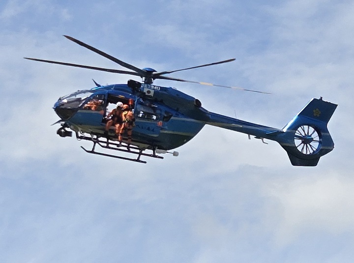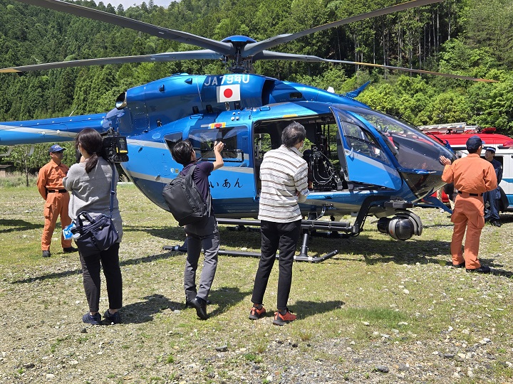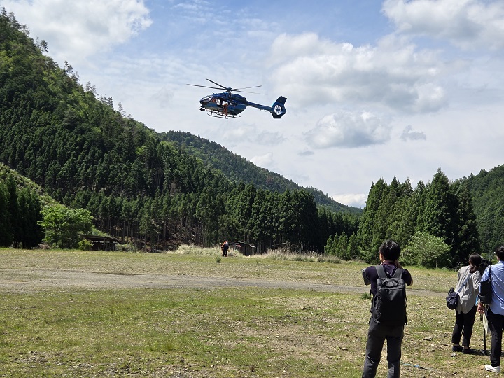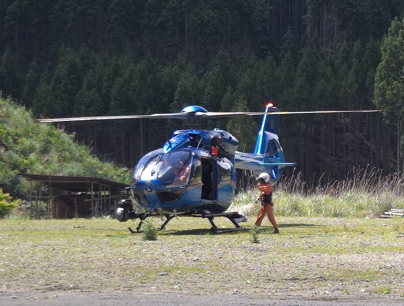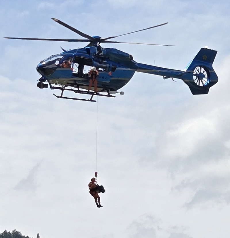 京都府警察のヘリコプターがいち早く、救助に来てくださり 抱きかかえて、無事救出