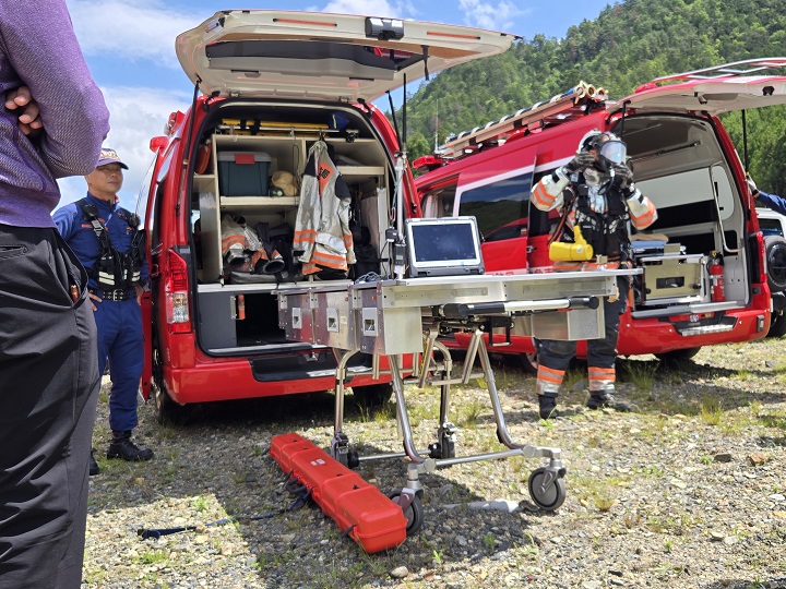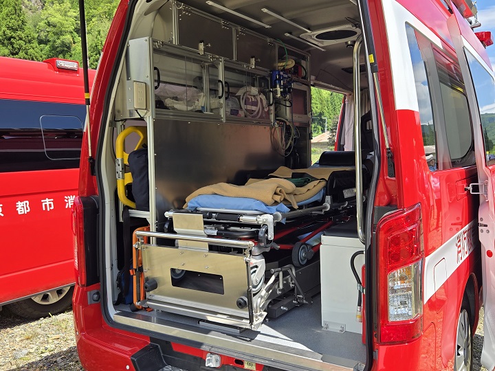 北消防署中川消防出張所にある 消防車と救急車のそれぞれの機能を備えた車両、 消防救急車も特別出動