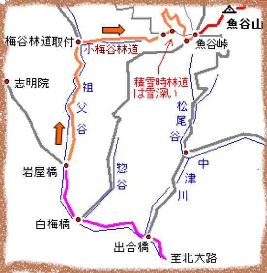 小梅谷から山に入り魚谷峠から惣谷方面尾根へ