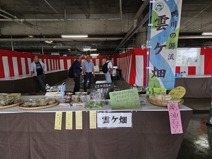 佃煮、雲ケ畑産野菜、廃油石鹸などを販売して、 会場の雰囲気を盛り上げるお手伝い。
