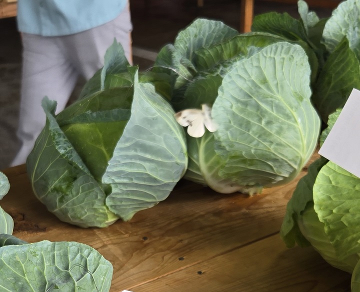 キャベツのコーナーでは、 元気に楽しそうに蝶々が舞っています。