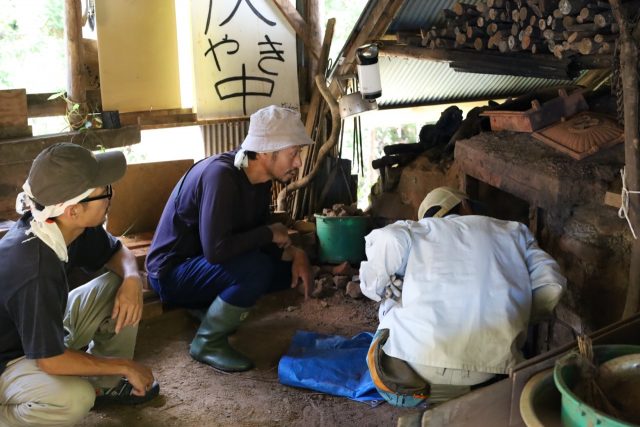 ワークショップの後は、直治さんの炭焼き小屋見学です。