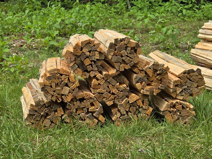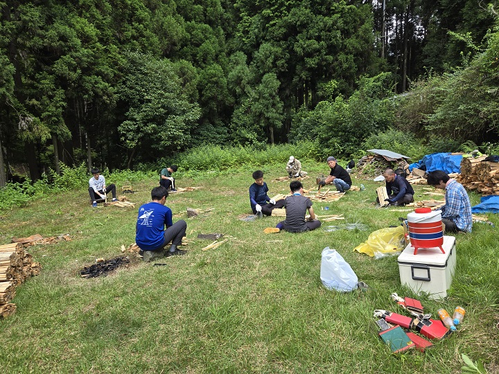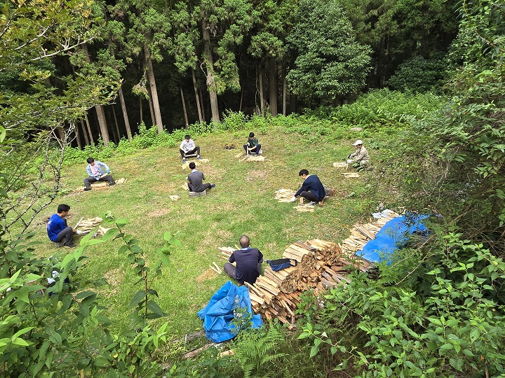 まず、大量の薪を背負子(しょいこ)を使って山へ運びます。