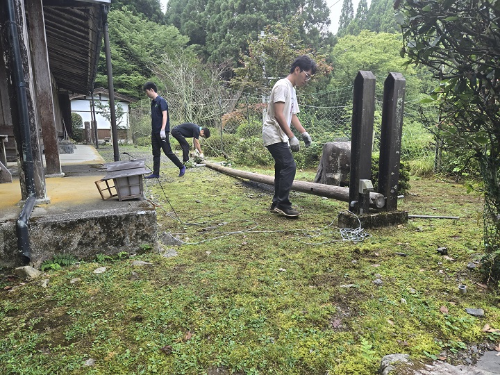 雲ヶ畑 松上げのシンボル 高灯籠を片付け。