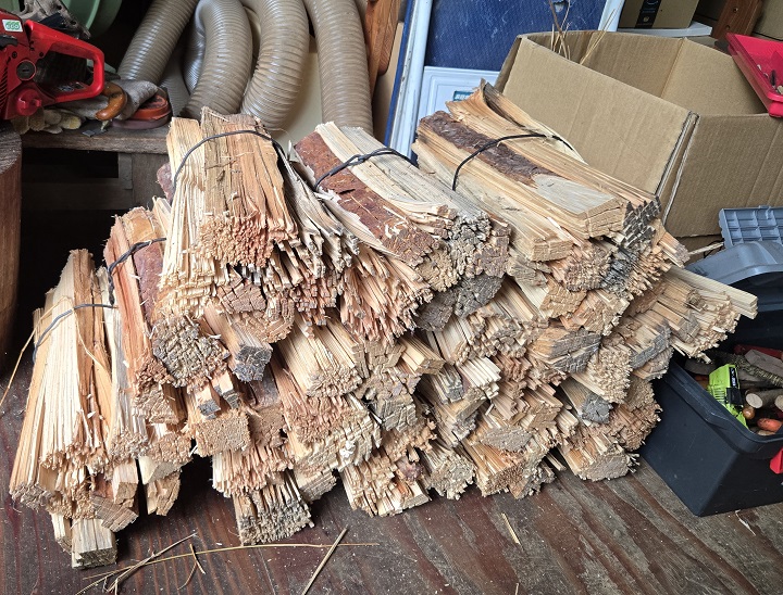 11日に割った薪を、火を灯す愛宕山へ運ぶ者と