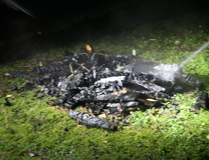 雲ケ畑消防分団が燃えつくす松明を見守り・・・