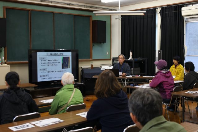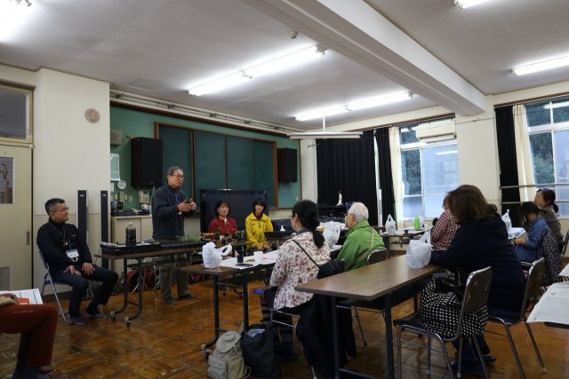 小学校にて、なおはるさんの炭焼きの歴史や手法を教えていただいたあと、