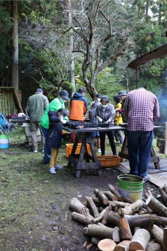 ↓炭焼小屋にて、スタッフ参加者の方同士の交流も深まる!