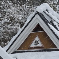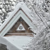 屋根に雪が積もると、浮き立って見える家紋。