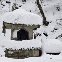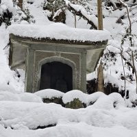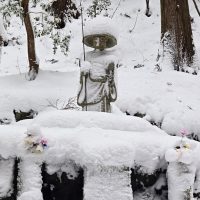 岩屋山志明院の小さな祠やお地蔵様も雪の中